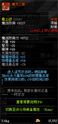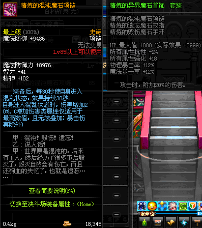 85 精炼的混沌魔石项链 *Lv84~91深渊地下城怪物掉落
