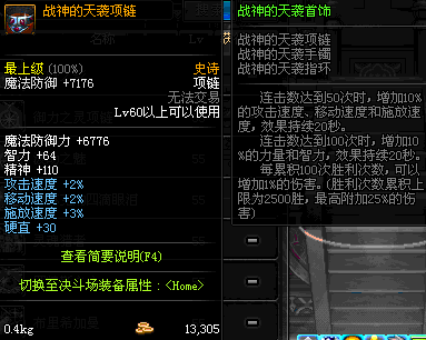 60 战神的天袭项链 *在NPC沉默之克雷娅的物品店购买 (宇宙灵魂×200)
