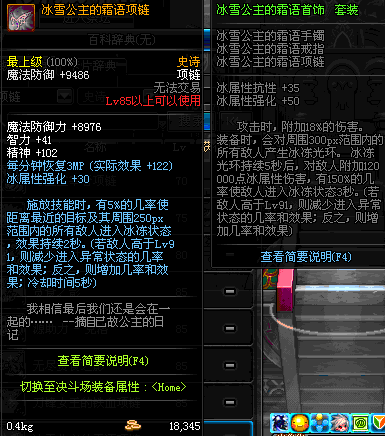 85 冰雪公主的霜语项链 *Lv84~91深渊地下城怪物掉落