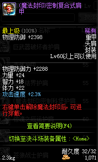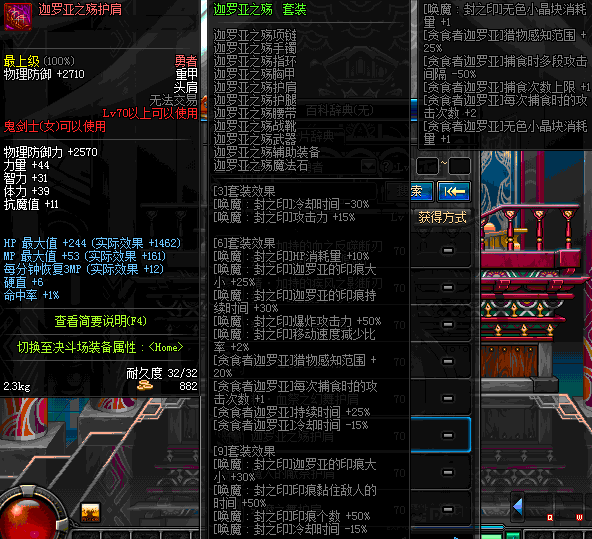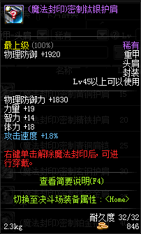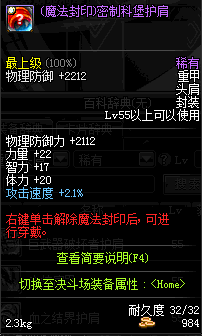 | 35 | (魔法封印)密制钛合金肩甲 | *Lv34~41普通地下城怪物掉落 |