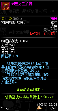 | 70 | 御兽之王护肩 | *兽王 乌塔拉 掉落(格兰之火) *在NPC西岚的物品店购买(银色陨石×286) |