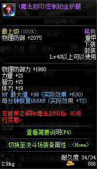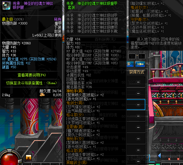 | 35 | 圣物 :生命女神的铂金护腿 | *Lv34~41普通地下城怪物掉落 |