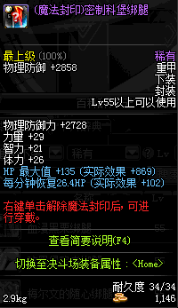 | 50 | 圣物 :荣耀的战争女神的墨钢护腿 | *Lv50~56普通地下城怪物掉落 |