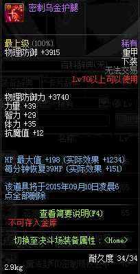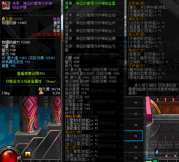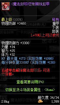 | 70 | 圣物 :荣耀的摩羯守护神的铂金护腿 | *Lv70~76普通地下城怪物掉落 |