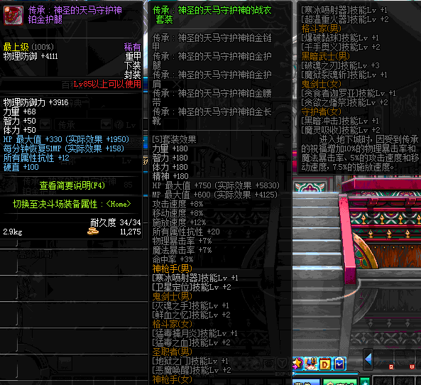 | 85 | 圣物 :荣耀的天马守护神的铂金护腿 | *Lv85~91普通地下城怪物掉落 | ||