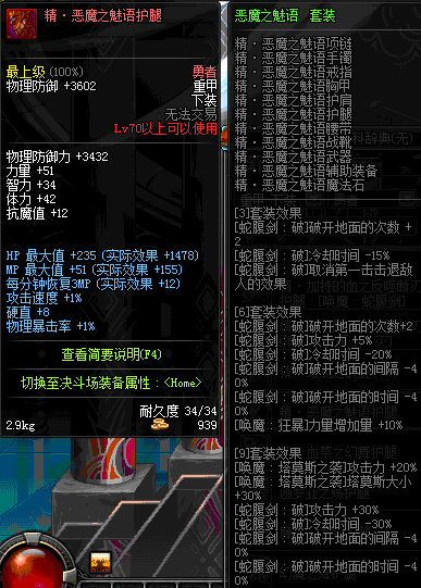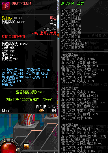 | 70 | 精·棘手的地狱守护者护腿 | |||