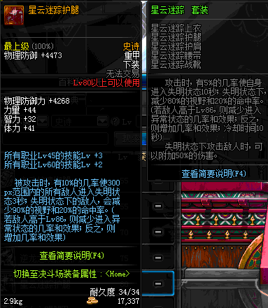 | 80 | 星云迷踪护腿 | *Lv79~86深渊地下城怪物掉落 | 星云迷踪 套装 | |