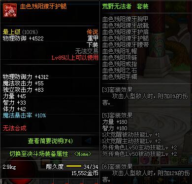| 85 | 血色残阳獠牙护腿 | *昨日之巴斯顿 掉落 (在远古地下城里出没。) *从NPC鲁特的物品店出售的[血色残阳防具礼盒]中获得 |