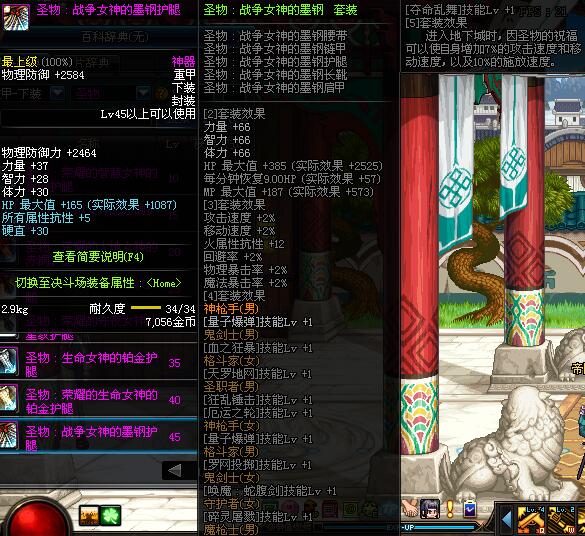| 45 | 圣物 :战争女神的墨钢护腿 | *Lv45~51普通地下城怪物掉落 |