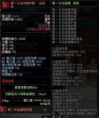 | 70 | 真· 战争之王的钛银护腿 | *战争之王的钛银护腿 → 用远古神器装备进化书升级(NPC船长鲁特 出售) | 真·战争之王的遗志 套装 | |