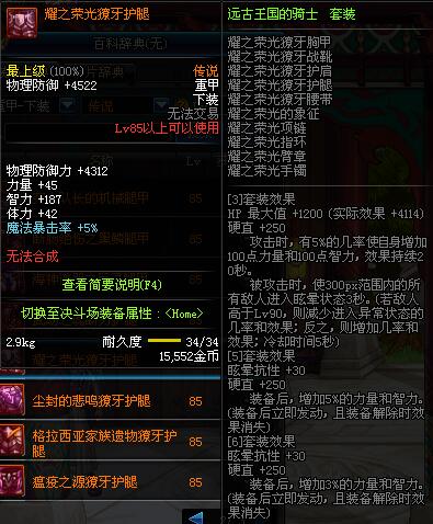 | 85 | 耀之荣光獠牙护腿 | *昨日之巴斯顿 掉落 (在远古地下城里出没。) *从NPC鲁特的物品店出售的[耀之荣光防具礼盒]中获得 |