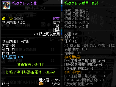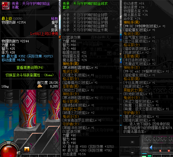 | 辅助装备: | 全职业 鬼剑士 女鬼剑 女格斗 男格斗 神枪手 女枪手 魔法师 男法师 圣职者 暗夜使者 守护者 |