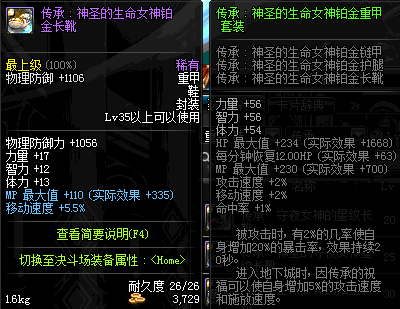 | 35 | 圣物 :生命女神的铂金长靴 | *Lv34~41普通地下城怪物掉落 |