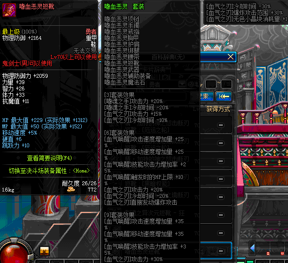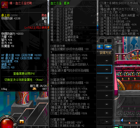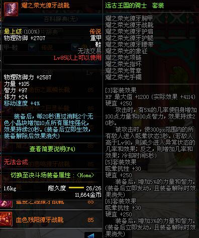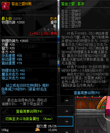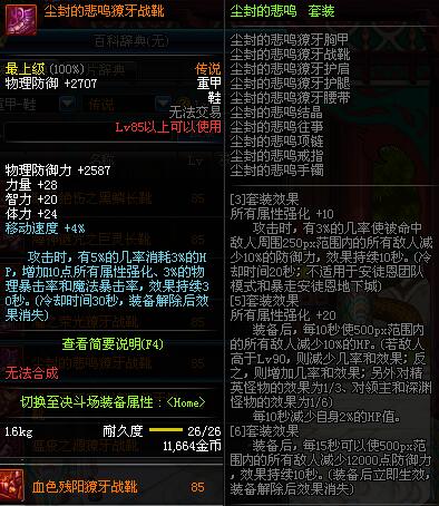 | 85 | 誓血之盟战靴 | *Lv84~91深渊地下城怪物掉落 | 誓血之盟 套装 | |