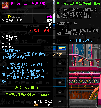 | 76 | 真 · 尼尔巴斯的链甲战靴 | *设计图(70LV以上普通地下城 登场的NPC加百利 出售) *尼尔巴斯的链甲战靴 → 用远古神器装备进化书升级(NPC船长鲁特 出售) |