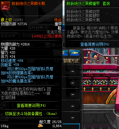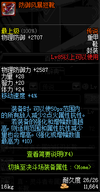 | 85 | 圣物 :荣耀的天马守护神的铂金长靴 | *Lv85~91普通地下城怪物掉落 | ||