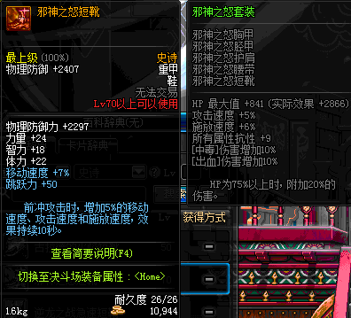 | 70 | 邪神之怒短靴 | *Lv69~76深渊地下城怪物掉落 | 邪神之怒套装 | |