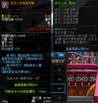| 75 | 逆龙之战急速短靴 | *Lv74~81深渊地下城怪物掉落 | 逆龙之战 套装 | |