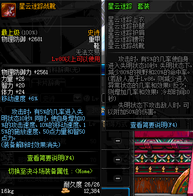 | 80 | 星云迷踪战靴 | *Lv79~86深渊地下城怪物掉落 | 星云迷踪 套装 | |