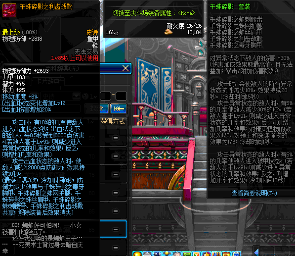 | 85 | 千蛛碎影之利齿战靴 | *Lv84~91深渊地下城怪物掉落 | 千蛛碎影 套装 | |