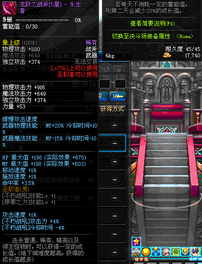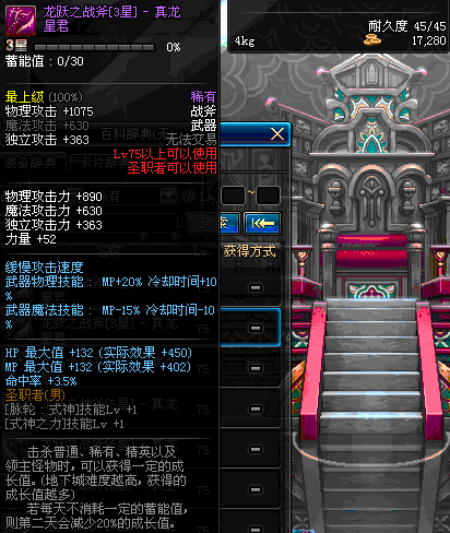 | 45 | 天启战斧 | *Lv45~51普通地下城怪物掉落 *在加百利的神秘商店购买 |