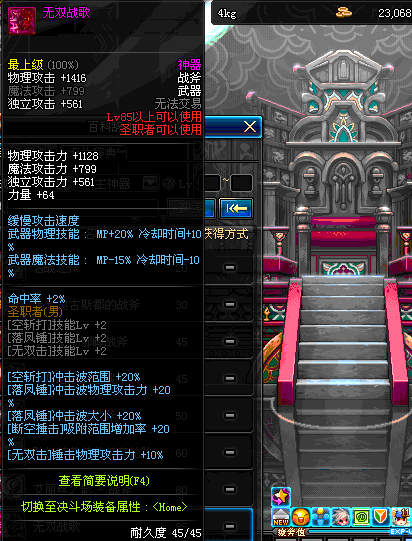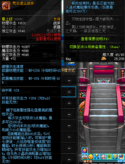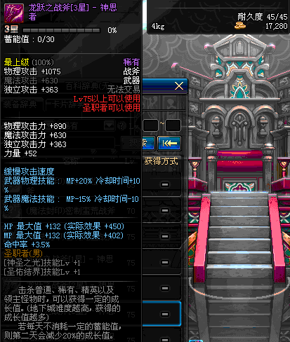 | 75 | 狂乱之舞战斧 | *Lv75~81普通地下城怪物掉落 *在加百利的神秘商店购买 |