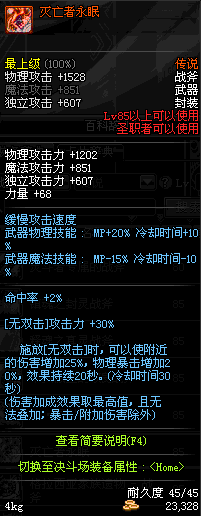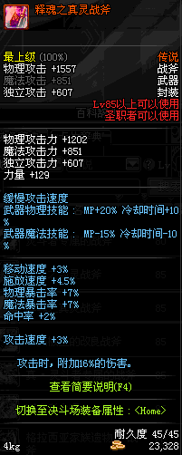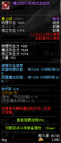 | 45 | 萨乌塔的冥血战斧 | *牛头王萨乌塔 掉落(冰刺庭院) *在NPC敏泰的物品店购买(阿拉德陨石×240) |