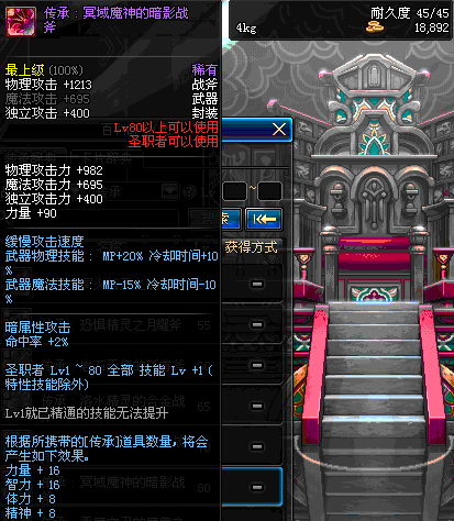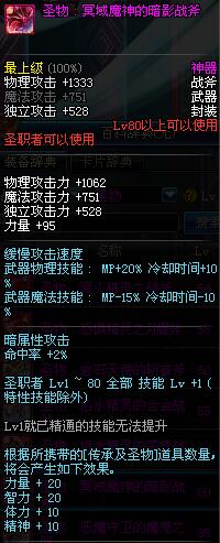 | 80 | 圣物 : 冥域魔神的暗影战斧 | *Lv80~86普通地下城怪物掉落 | ||
