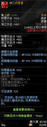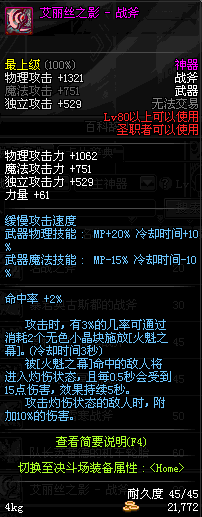 | 辅助装备: | 全职业 鬼剑士 女鬼剑 女格斗 男格斗 神枪手 女枪手 魔法师 男法师 圣职者 暗夜使者 守护者 |