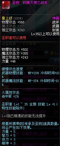 | 35 | 圣物 救赎天使之战斧 | *Lv34~41普通地下城怪物掉落 |