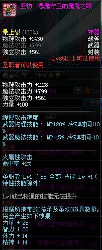 | 85 | 圣物 : 恶魔守卫的魔鬼之眼 | *Lv85~91普通地下城怪物掉落 | ||