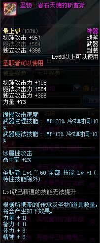 | 30 | 圣物 : 雪魂冰魄之战斧 | *Lv29~36普通地下城怪物掉落 |