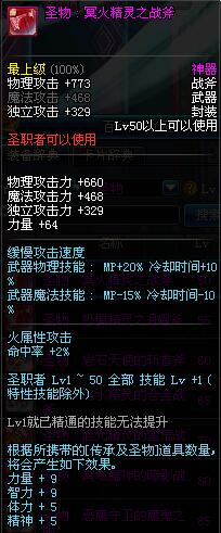 | 50 | 圣物 : 冥火精灵之战斧 | *Lv50~56普通地下城怪物掉落 |