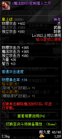 | 35 | (魔法封印)密制猎人爪 | *Lv34~41普通地下城怪物掉落 |