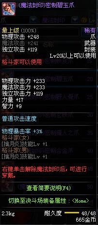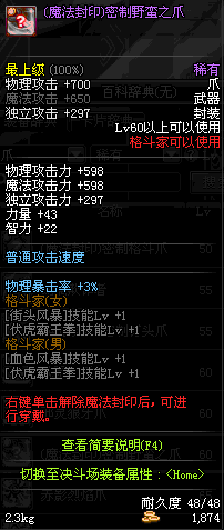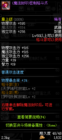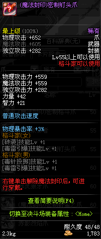 | 50 | (魔法封印)密制格斗爪 | *Lv50~56普通地下城怪物掉落 *完成[黑色噩梦投影出来的世界]任务 *使用Lv50~56怪物掉落的设计图进行制作 |