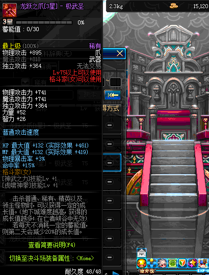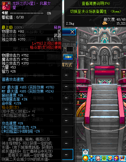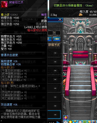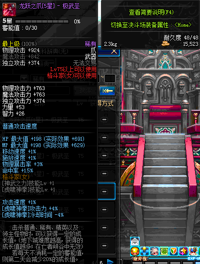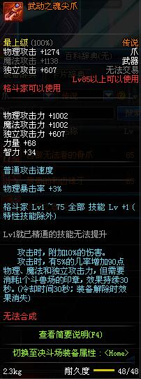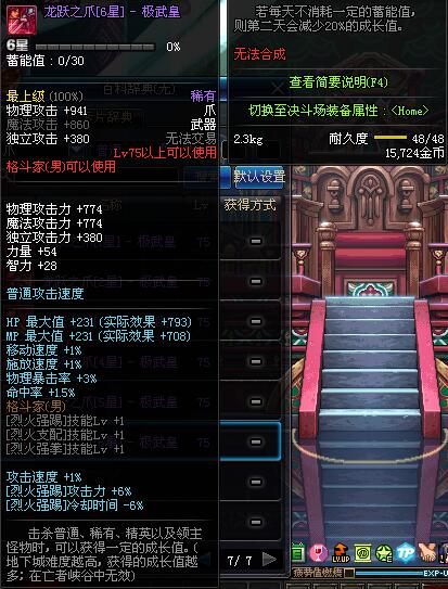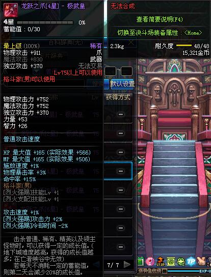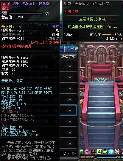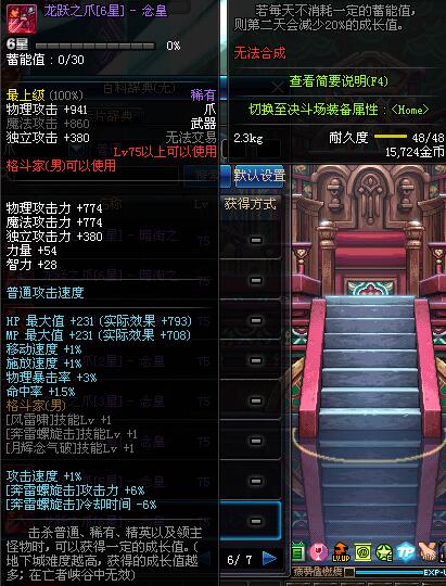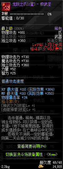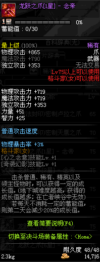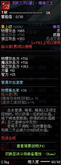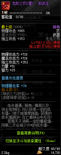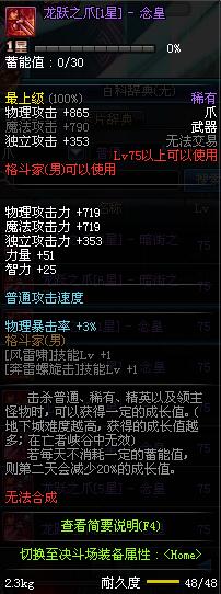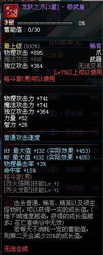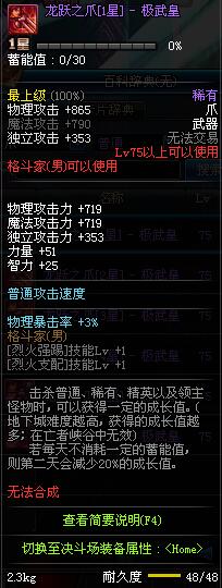 | 75 | 龙跃之爪[1星] - 极武皇 | *完成二次觉醒任务后可以从NPC小铁柱处获得此道具。 | ||