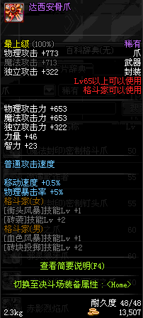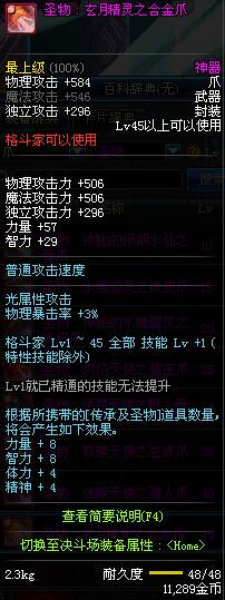 | 45 | 圣物 : 玄月精灵之合金爪 | *Lv45~51普通地下城怪物掉落 |