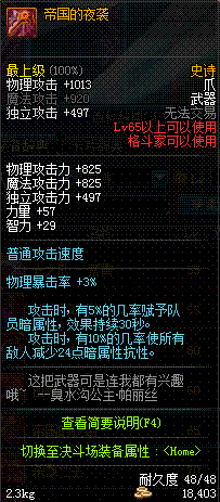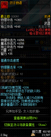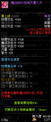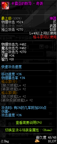 | 辅助装备: | 全职业 鬼剑士 女鬼剑 女格斗 男格斗 神枪手 女枪手 魔法师 男法师 圣职者 暗夜使者 守护者 |
