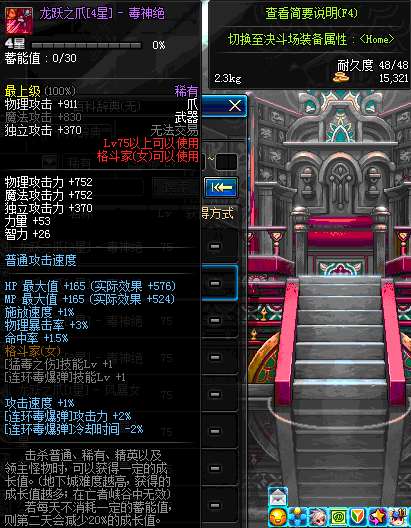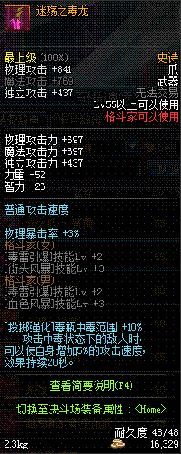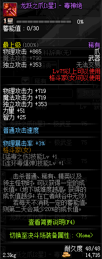 | 75 | 龙跃之爪[3星] - 毒神绝 | *完成二次觉醒任务后可以从NPC小铁柱处获得此道具。 | ||