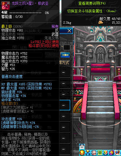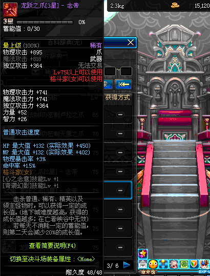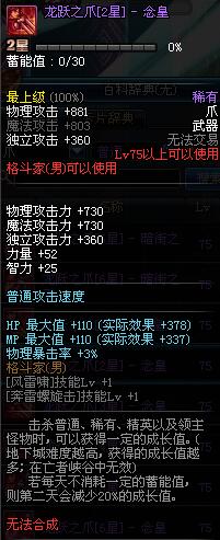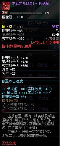| 75 | 龙跃之爪[2星] - 极武皇 | *完成二次觉醒任务后可以从NPC小铁柱处获得此道具。 | ||