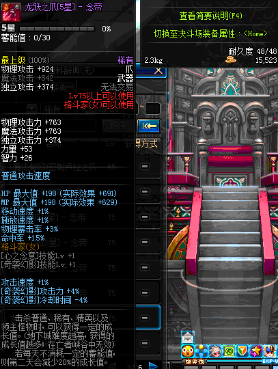 | 75 | 龙跃之爪[5星] - 念皇 | *完成二次觉醒任务后可以从NPC小铁柱处获得此道具。 | ||