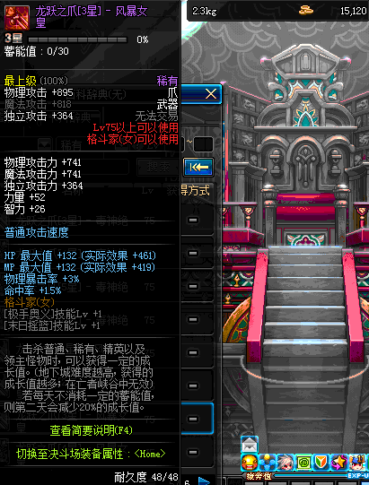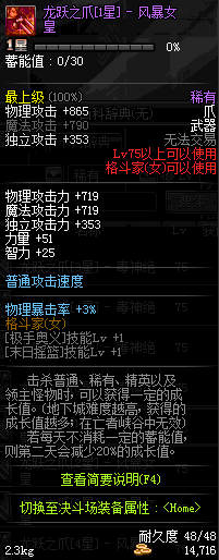 | 75 | 龙跃之爪[2星] - 风暴女皇 | *完成二次觉醒任务后可以从NPC小铁柱处获得此道具。 | ||