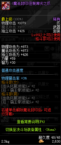 | 85 | (魔法封印)密制卑劣之爪 | *Lv85~91普通地下城怪物掉落 *完成[黑色迷雾]任务 |