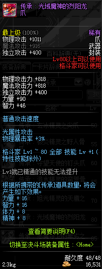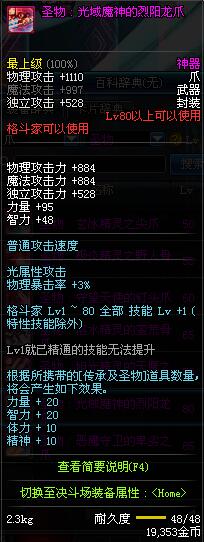 | 80 | 圣物 : 光域魔神的烈阳龙爪 | *Lv80~86普通地下城怪物掉落 | ||