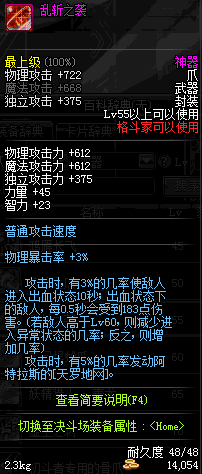 | 55 | 乱斩之袭 | *Lv53~61普通地下城怪物掉落 *在加百利的神秘商店购买 |