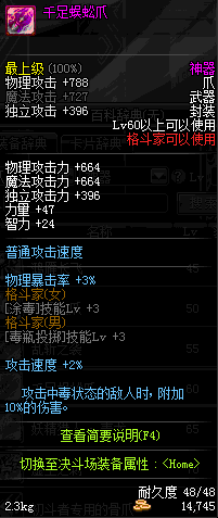 | 60 | 千足蜈蚣爪 | *Lv58~66普通地下城怪物掉落 *在加百利的神秘商店购买 |