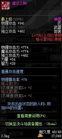 | 70 | 虚空之刺 | *Lv70~76普通地下城怪物掉落 *在加百利的神秘商店购买 |