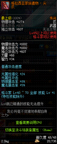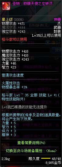 | 35 | 圣物 : 救赎天使之玄铁爪 | *Lv34~41普通地下城怪物掉落 |