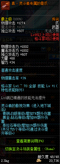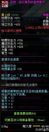 | 65 | 圣物 : 洛水精灵的蛮荒骨爪 | *Lv65~71普通地下城怪物掉落 |