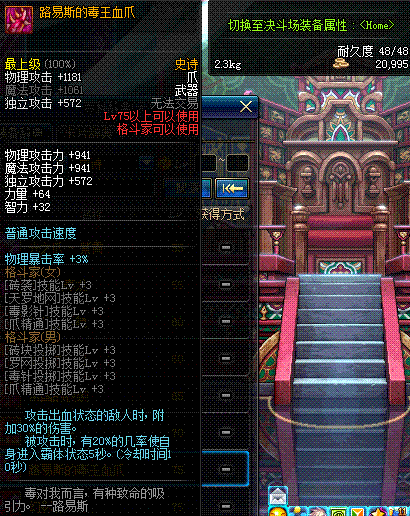 | 75 | 幻影追魂爪 | *鬼魂系 - 痛苦女王 掉落(王的遗迹(深渊)) | ||